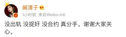 没出轨 没捉奸 没合约 真分手。谢谢大家关系。