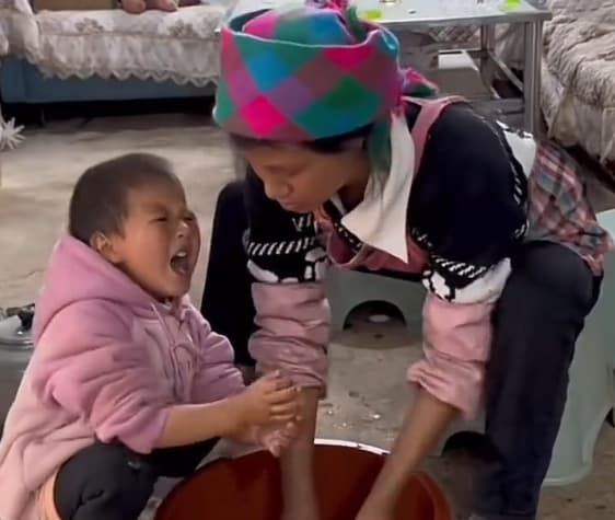 所以在搓洗的过程当中,下拉如满脸的痛苦面具,嘴边还一直嘟嚷着“没事哒 没事哒 没事哒!”。
