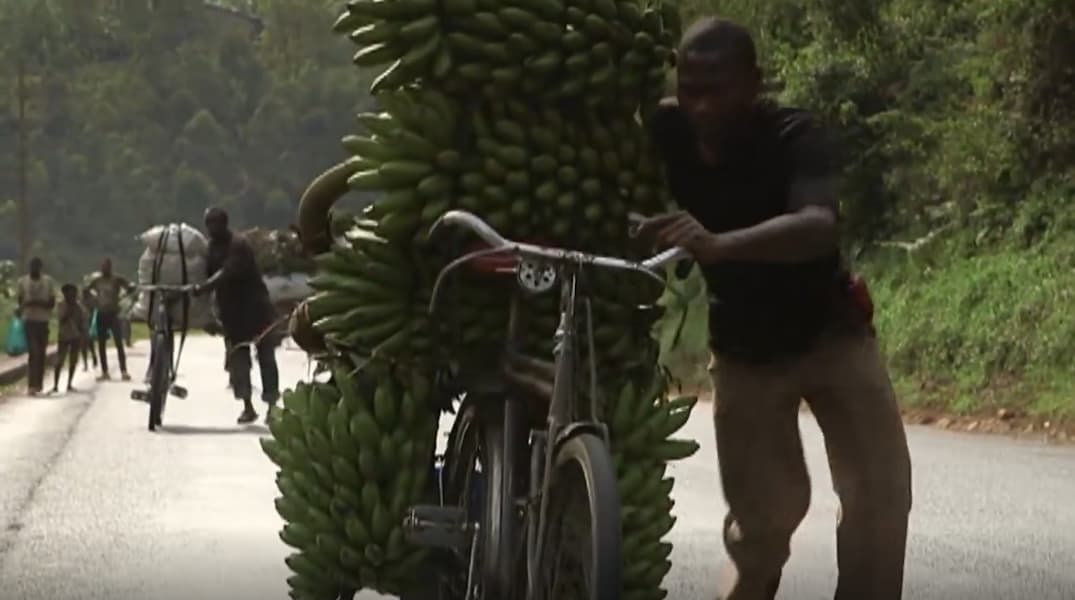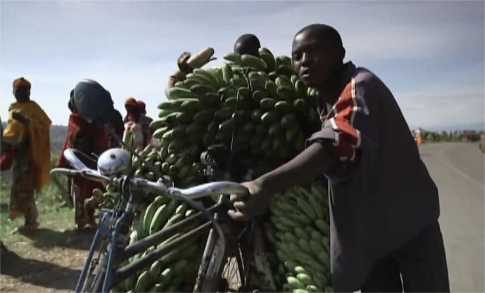 纪录片《天路布隆迪》截图:满载香蕉的自行车